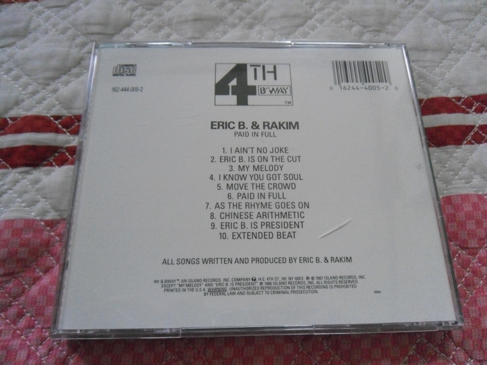 ALBUM BOOKLET Eric B. & Rakim - Paid In Full