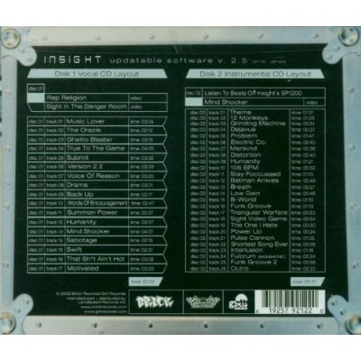강력한 랩핑과 비트로 보스톤의 강력한 신인으로 떠오르면서 Boston Music Awards 신인상을 받았던 Insight의 데뷔작. 이후 언더그라운드 힙합씬에서 다양한 그룹 활동과 솔로 활동을 하게 되는데...Electric Company, Shinsight Trio, Y SOCIETY (Insight + Damu the Fudgemunk)의 주축 아티스트로 그룹을 이끌고 지금도 계속되는 콜라보로 언더그라운드에 활력을 불어넣고 있습니다. 이제는 보스톤의 형님이 되어버린 인싸이트의 첫 시작을 알리는 앨범.